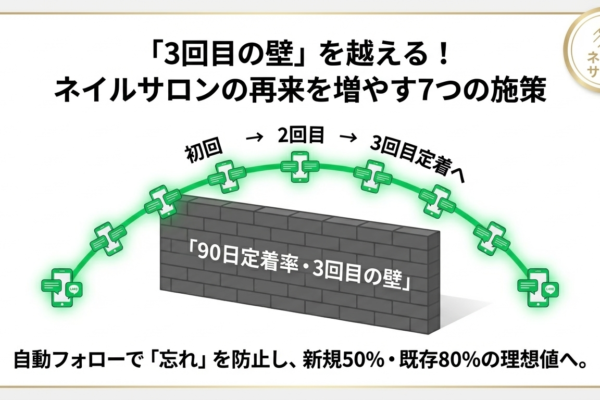 来店後、あらかじめ設定した時間にLINEメッセージを自動配信していきます。 来店後の口コミ記入依頼やメニューごとに理想の来店周期に合わせた再来促進などをスタッフ様の手作業ゼロで送ることができます。